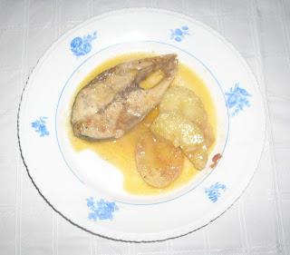 _serve-se com batata cozida e grelos cozidos (neste caso, foi a bela da couve, um pouco mais ácida)