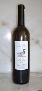 Para acompanhar, escolhi um Quinta do Moínho, do Engº Luís Pato, de 1998, ainda em excelente forma (acho que mais dez anos não lhe farão grande mossa), com 13,5º de álcool, um Baga magnífíco. No contra rótulo: