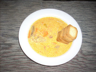 Bem, vou começar pela sobremesa. Um simples creme de leite condensado com ovos (uma lata de leite condensado já cozido, três ovos, uns minutos de batedeira e frigorífico com ele).