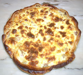 A receita reproduzida em baixo foi tirada das 100 mais famosas receitas do mundo e terá algum rigor. A verdade é que a quiche actualmente é uma espécie de rolls-royce do fast-food. A que quiche apresento foi feita sobre uma base de massa folhada, levou bacon, cogumelos de lata (não tinha cogumelos a sério em casa), queijo ralado e ovos batidos com natas (às vezes junto uma chalota em rodelas muito finas ou alho francês fatiado finamente). Nada de especial, mas como nem dá trabalho...