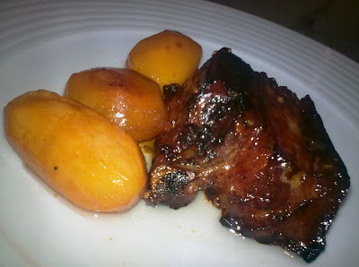 Estes vinhos foram acolitados por um cachaço de porco preto grelhado e umas migas de feijão vermelho.