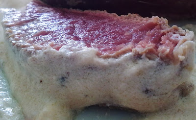 Comprei um naco de perna de porco cortada como se fosse para bifanas grossas (com cerca de 1 cm de espessura) que deixei a "marinar" em azeite num tamparuére (tinha tampa) durante 24 horas. Findo esse período, juntei uma pasta feita com alho, pimenta preta, massa de pimentão, vinho branco (o