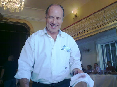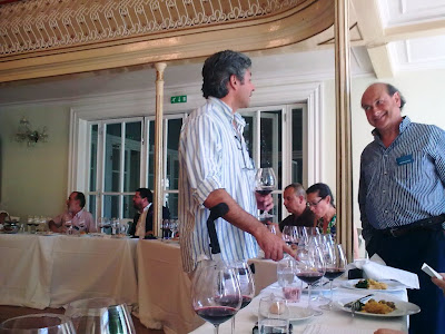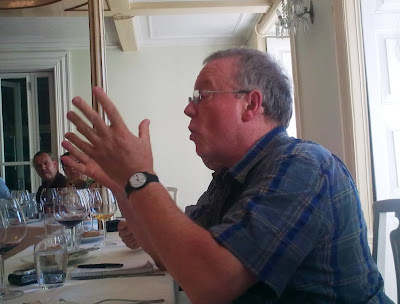 Luís Lourenço a falar do seu "Verdelho". Gostei muito do Primus 2007 do Álvaro de Castro, mas para acompanhar a comida, o Verdelho das Maias esteve uns furos acima do aristocrático Primus; o Verdelho para a mesa, o Primus para os concursos (o que não quer dizer que não o queira provar outra vez, de bom que era). Mais tarde, quando o Luís Lourenço veio servir um vinho do CEN balbuciei algo como: foi este tipo que fez o verdelho, não foi? ainda bem que vim precavido, tenho um pacote de vinho branco no bolso. o luís lourenço disse que sabia que eu ia estar e naturalmente trouxe os piores vinhos da casa. Bela resposta por parte de um dos grandes produtores do Dão, mesmo sabendo (ele) que sou grande fã...