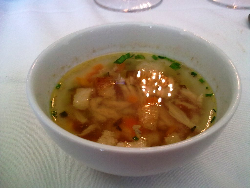 Momento de paz... Consommé de codorniz, Croutons de Gengibre e ervas Aromáticas...