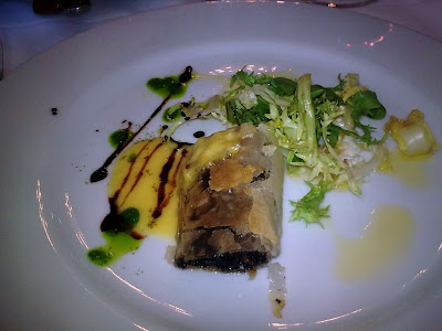 O prato era um folhadinho de queijo da Serra, mel e alecrim...