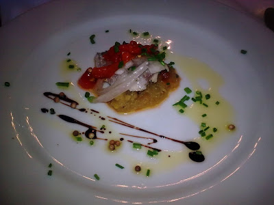 O prato... Sardinha alimada com pimento confitado. Excelente a sardinha, em muito bom tom as sementes de coentros. Deliciosas nessa preparação.