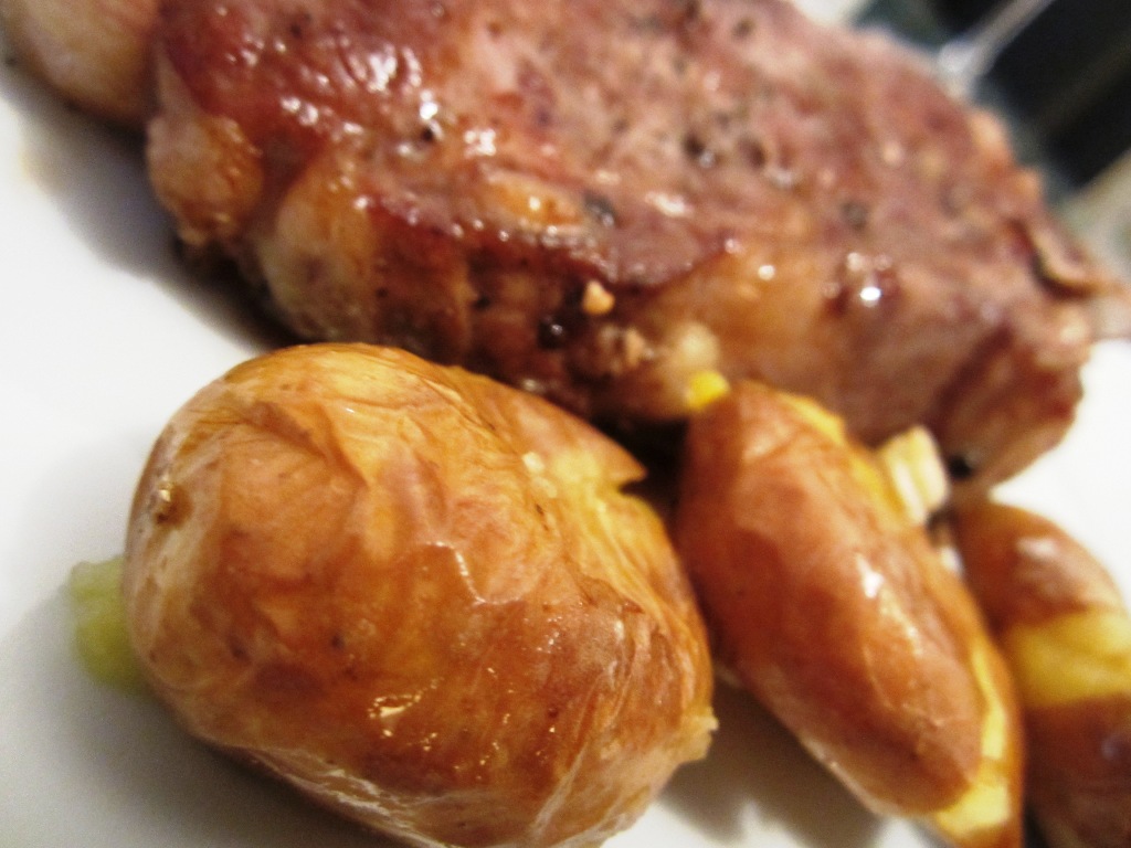 Começa-se por meter batatas a assar, pequenas e novas, na cloche, demoram cerca de meia hora e só precisam de sal.