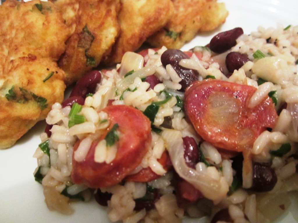 Trilogia número 104 a cumprir-se, desta vez com a Ana a sugerir o tema a mim e ao Luís: feijoada. E foi mesmo uma feijoada do Luís que deu o mote para o prato que preparei: uma feijoada de camarão com feijão manteiga e couve (aqui couve flor).