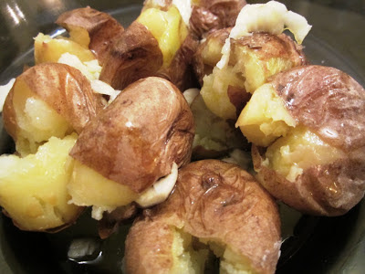 Para acompanhar, as quase mandatórias batatas a murro; assadas com a pele, junta-se-lhes alho esmagado e bom azeite, são uma delícia.