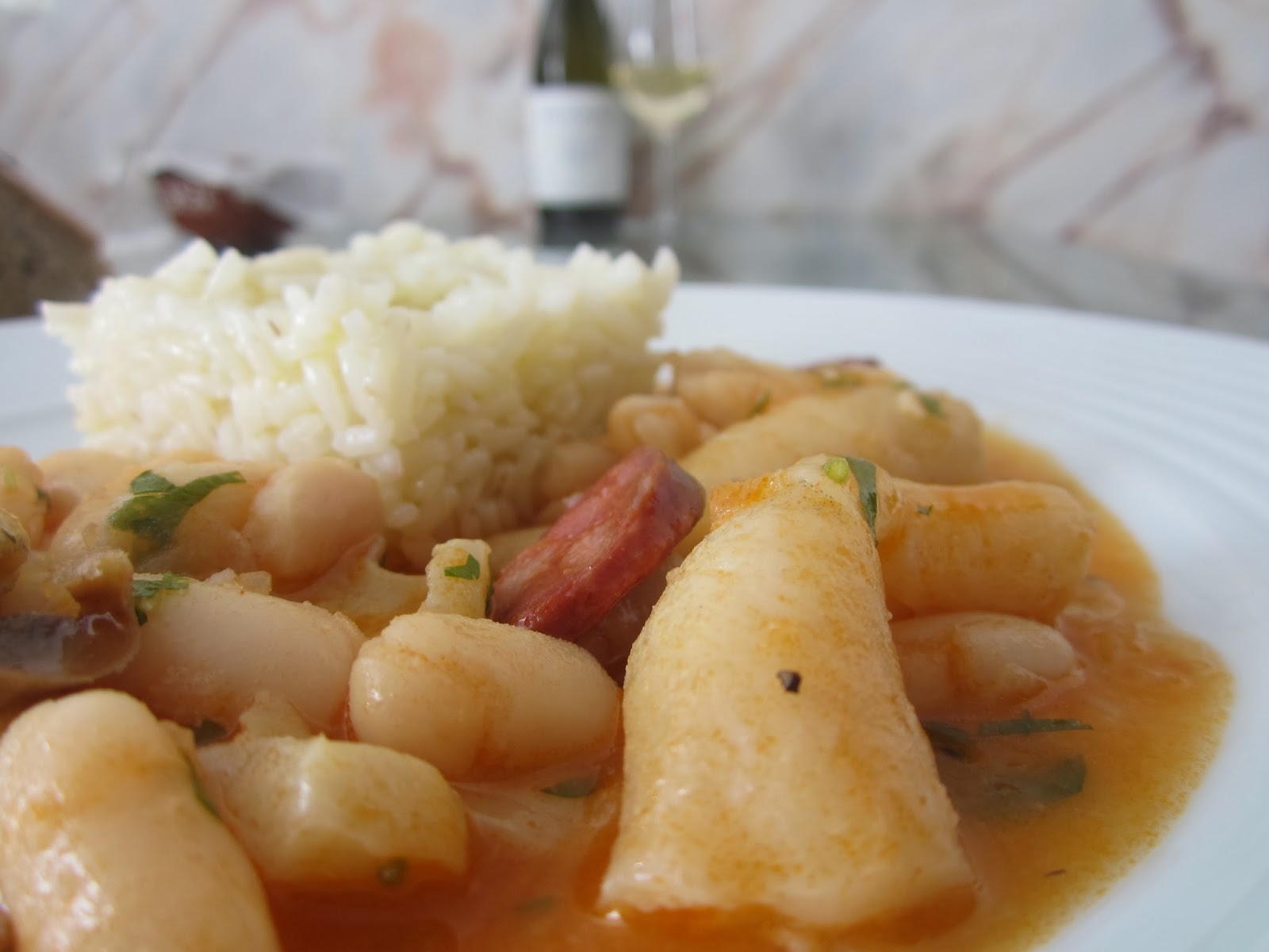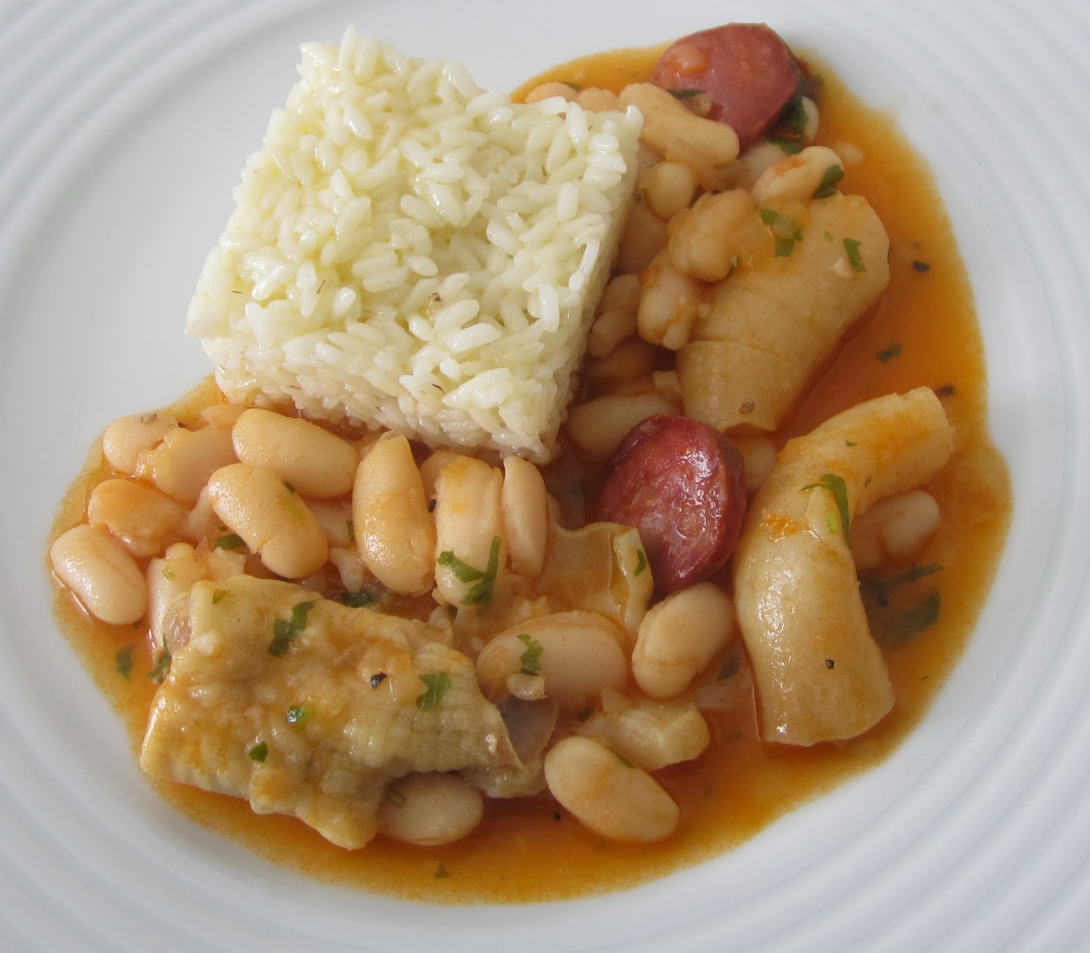 Este é um prato muito especial, pela fantástica textura dos sames, a fazer lembrar dobrada e o intenso sabor a mar das línguas, tudo equilibrado pela untuosidade do feijão branco. Uma delícia.