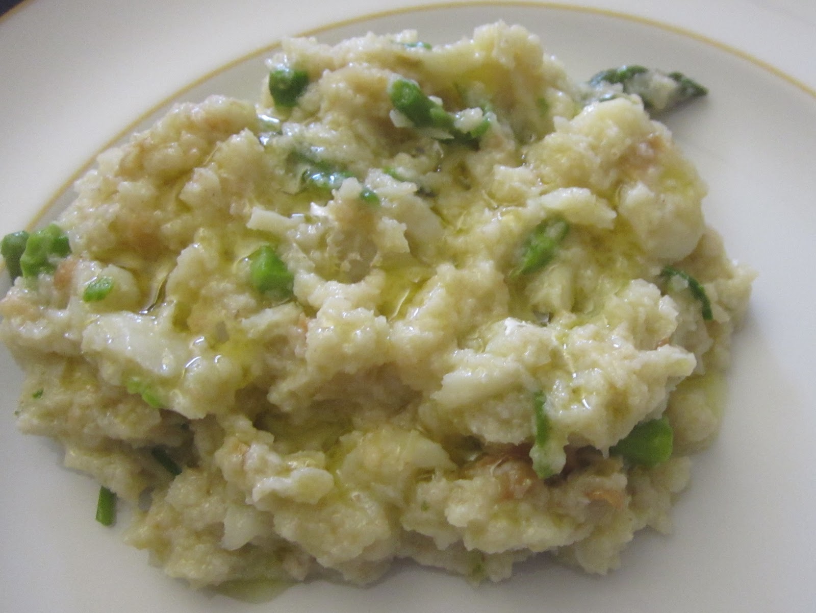 Neste almoço, comeu-se uma açorda de bacalhau e espargos selvagens, parecida com esta e depois um naco de cachaço de porco no forno.