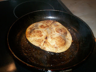 Aloura-se o bacon na frigideira (em azeite) e cozem-se os enchidos e os grelos (já agora, no mesmo tacho).