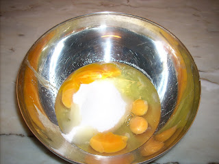 _deitei seis ovos e cerca de 300 gr de açucar numa taça;