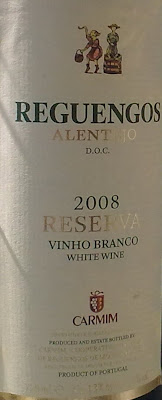 e o Reguengos Reserva Branco 2008 - nestas coisas de frango de churrasco, nem é fácil definir uma boa wine-pairing (é mais cerveja gelada powa rullaz) e este já estava no frigorífico a pedir para ser provado - feito com Antão Vaz e Arinto e proposto a € 3,99, parte do vinho estagiou em madeira. É interessante, fresco, com uma relação qualidade preço muito boa, mas sem deslumbrar. Nota pessoal 15,5.